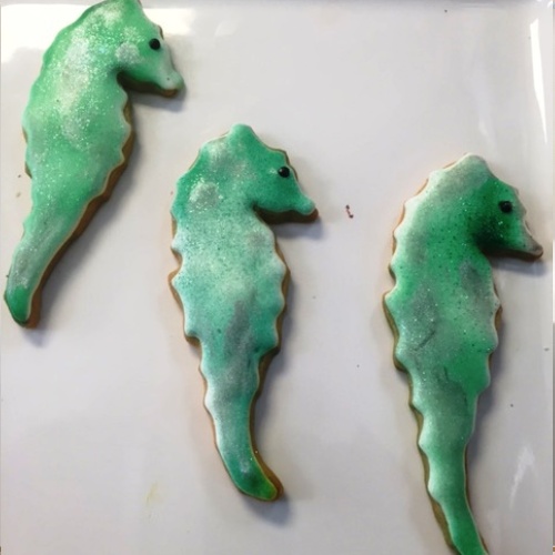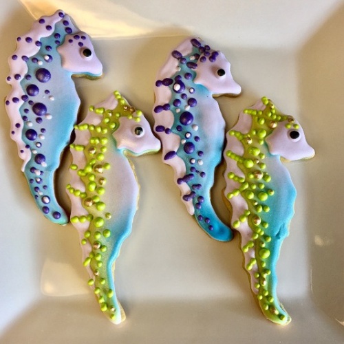 Just like our custom decorated cakes - we do the same exceptional handwork on custom shaped and decorated cookies. We can make almost any shape and any style and type of decoration. Custom cookies start at just $6.00 each, however, some designs are available for less, and more intricate designs do run more. Below are just a few of our custom designed and decorated cookies!